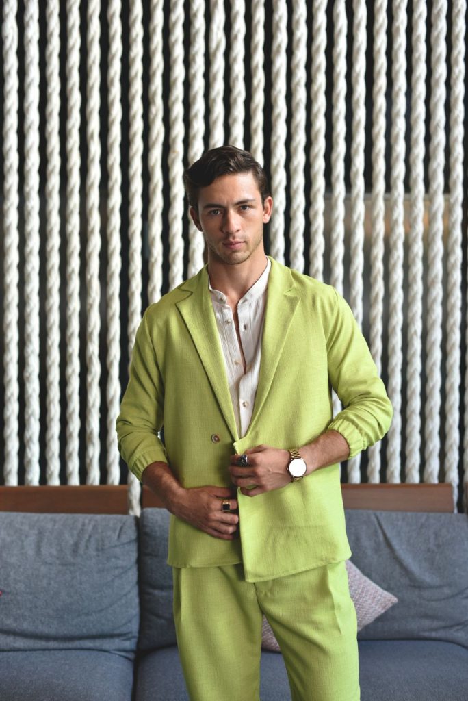 Diseñada por el mexicano Alberto Díaz, la firma ha construido una propuesta versátil que funciona tanto para el novio como para invitados que quieren destacar con discreción. Sus camisas estructuradas, pantalones de caída limpia y conjuntos coordinados logran ese equilibrio difícil entre formalidad y frescura. No es ropa casual “adaptada” a una boda; es diseño pensado para verse impecable frente al mar.